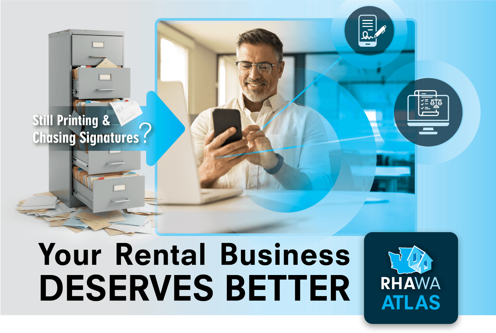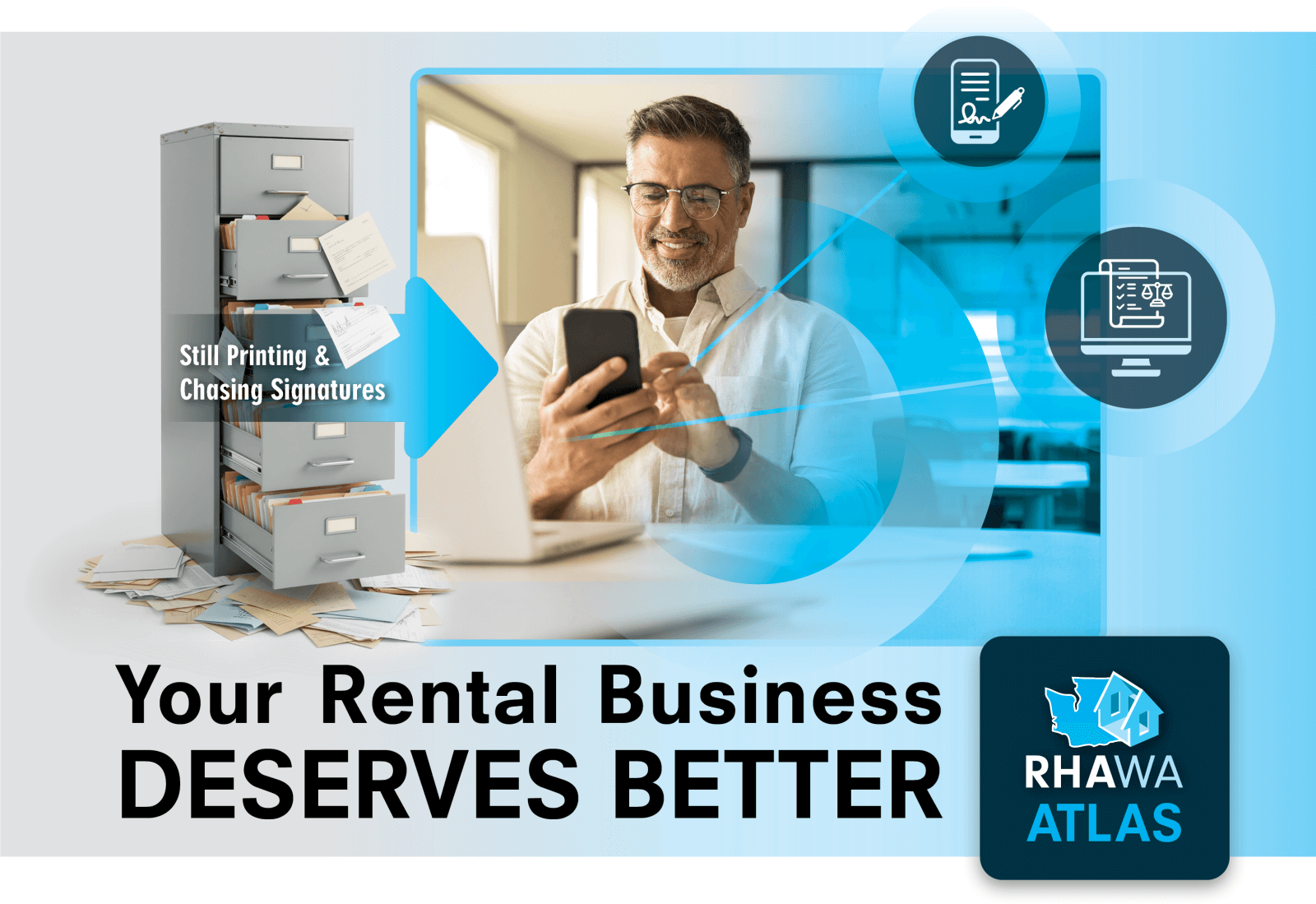 Our innovation team built this app for Washington small housing providers. Not corporations. Big software companies don't understand your business. You're independent. You move fast. You need tools that work for 1 unit or 100 units, not for some corporate franchise operation. RHAWA's Atlas is different. Built by RHAWA specifically for rental housing providers like you.