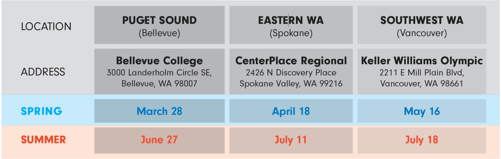 Eastern WA, April 18, at CenterPlace Regional Event Center in Spokane Valley
