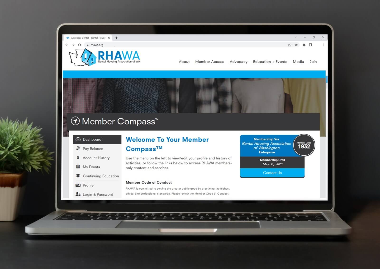 Once you have set up your e-mail and password, you will gain access to your RHAWA Member Compass. This portal allows you to update your profile, see events that you are registered for, pay invoices, and more!
